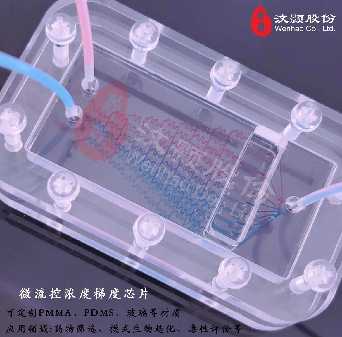 濃度梯度芯片基于層流擴散原理,通過改變通道網絡構型和初始溶液濃度,可以生成線性、指數等多種濃度梯度。利用濃度梯度芯片模擬外界環境變化,可應用于藥物篩選、模式生物趨化、毒性評價等研究領域。